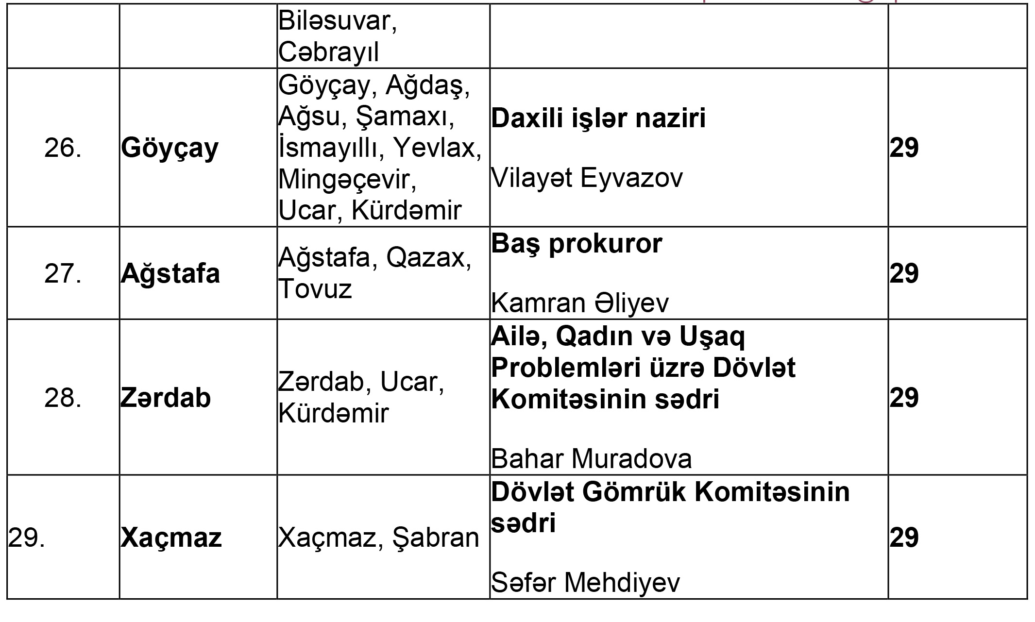Apreldə vətəndaşların qəbulu cədvəli açıqlandı