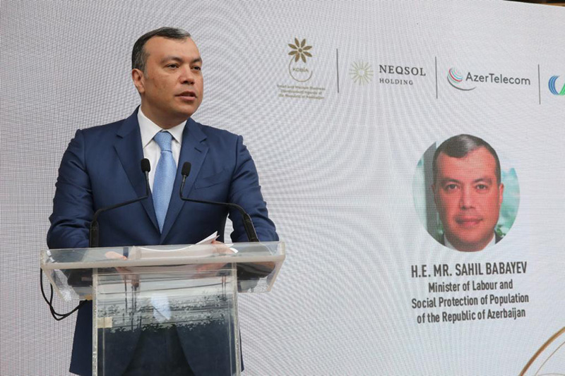 Tədbirdə çıxış edən Azərbaycan Respublkasının əmək və əhalinin sosial müdafiəsi naziri Sahil Babayev Azərbaycanda həyata keçirilən sosial islahatlar, özünüməşğulluq proqramı, DOST mərkəzlərinin fəaliyyəti, sosial ödənişlərin elektron təyinatı mexanizmləri barədə məlumat verib.