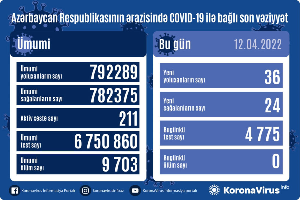 Məlumata görə, COVID-19 üçün götürülən analiz nümunələri müsbət çıxmış şəxslər arasında vəfat edən olmayıb.
