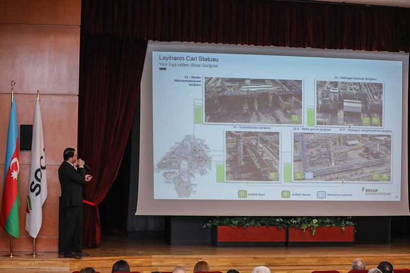 SOCAR-ın “Downstream Management” şirkətinin Baş direktorunun müavini, layihənin direktoru Emil Alxaslı çıxışında bildirib ki, “AVRO-5” standartlarına uyğun dizel və benzin istehsal edəcək qurğuların inşası uğurla, təhlükəsiz şəkildə davam etdirilir. Belə ki, layihənin hazırkı mərhələsinin sonunda NEZ-də 22 əsas texnoloji qurğunun fəaliyyəti təmin olunacaq. Bir sıra yeni və müasir tələblərə cavab verən əsas texnoloji və ümumzavod təsərrüfatı qurğuları inşa edilərək istismara veriləcək, 5 əsas qurğuda isə müəyyən bərpa işləri həyata keçiriləcək. NEZ-in ümumzavod təsərrüfatı və mövcud infrastrukturunun böyük bir hissəsi tamamilə yenilənəcək.