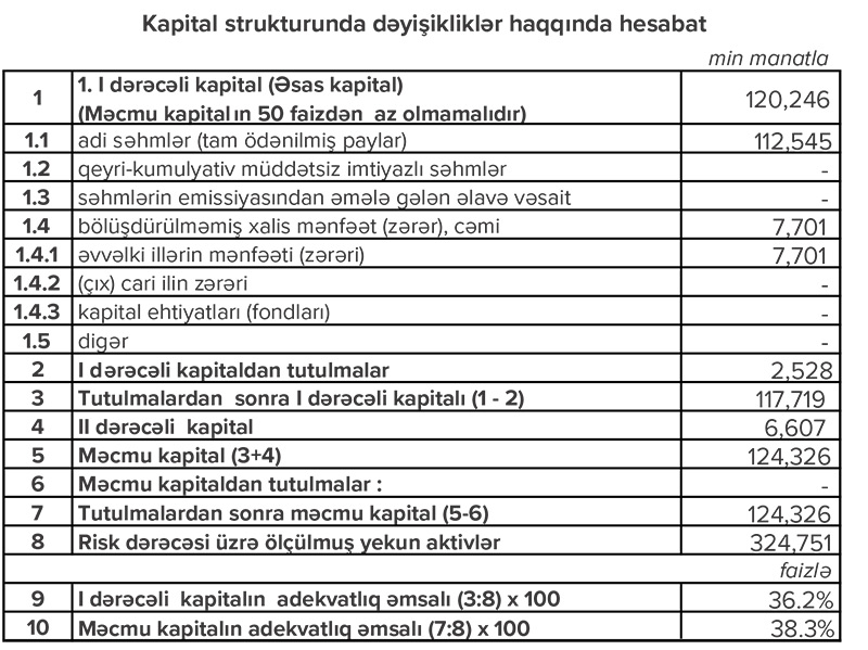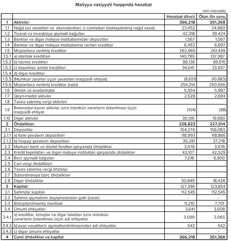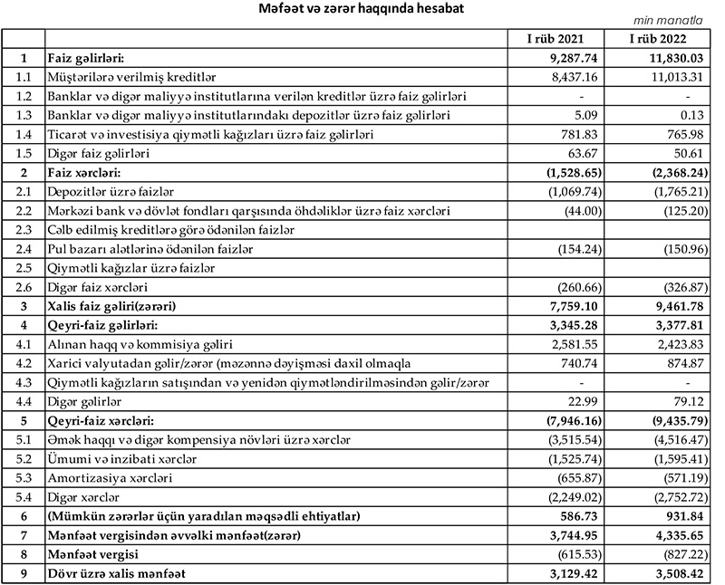 Daha bir bank maliyyə vəziyyətini açıqladı - 3,5 MİLYON MANAT XALİS QAZANC