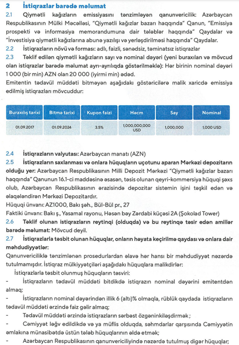 İstiqrazlar kütləvi təklif üsulu ilə yerləşdiriləcək.