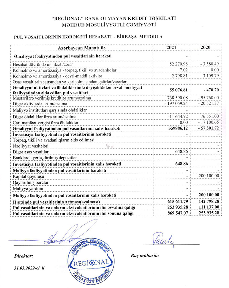 “Regional” BOKT MMC 2021-ci ili 52 min 271 manat xalis mənfəət ilə başa vurub. BOKT 2020-ci ili 3 min 580 manat xalis zərər ilə bağlamışdı.