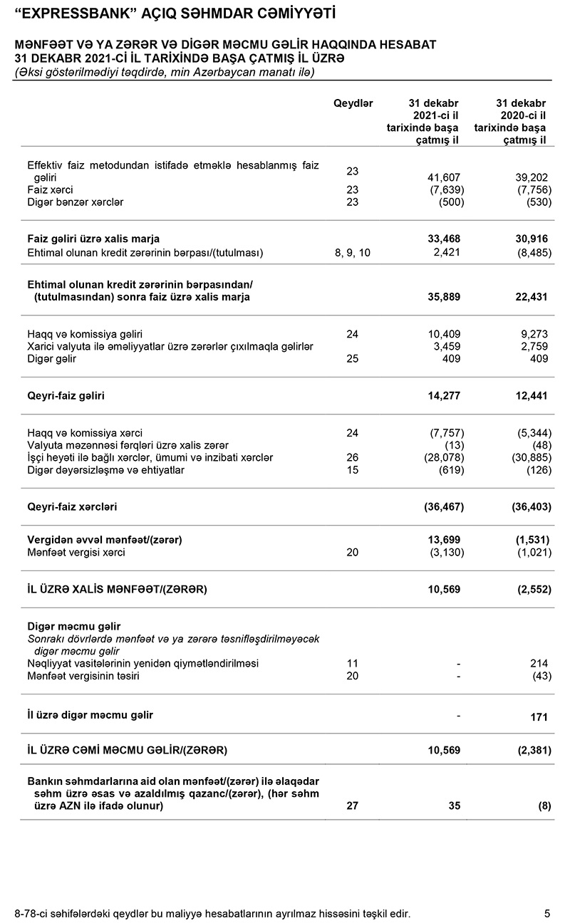 “Expressbank” 2021-ci il üzrə audit hesabatını açıqlayıb. Hesabata görə, Bank ötən ili 10 milyon 569 min manat mənfəətlə başa vurub.