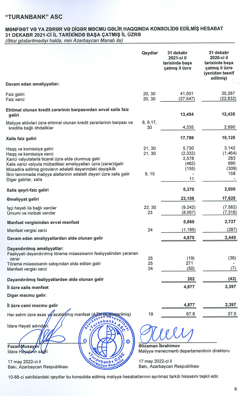 "Turanbank"ın 2021-ci il üzrə maliyyə hesabatlarının auditini "Baker Tilly Azerbaijan" şirkəti apararaq müsbət rəy verib.
