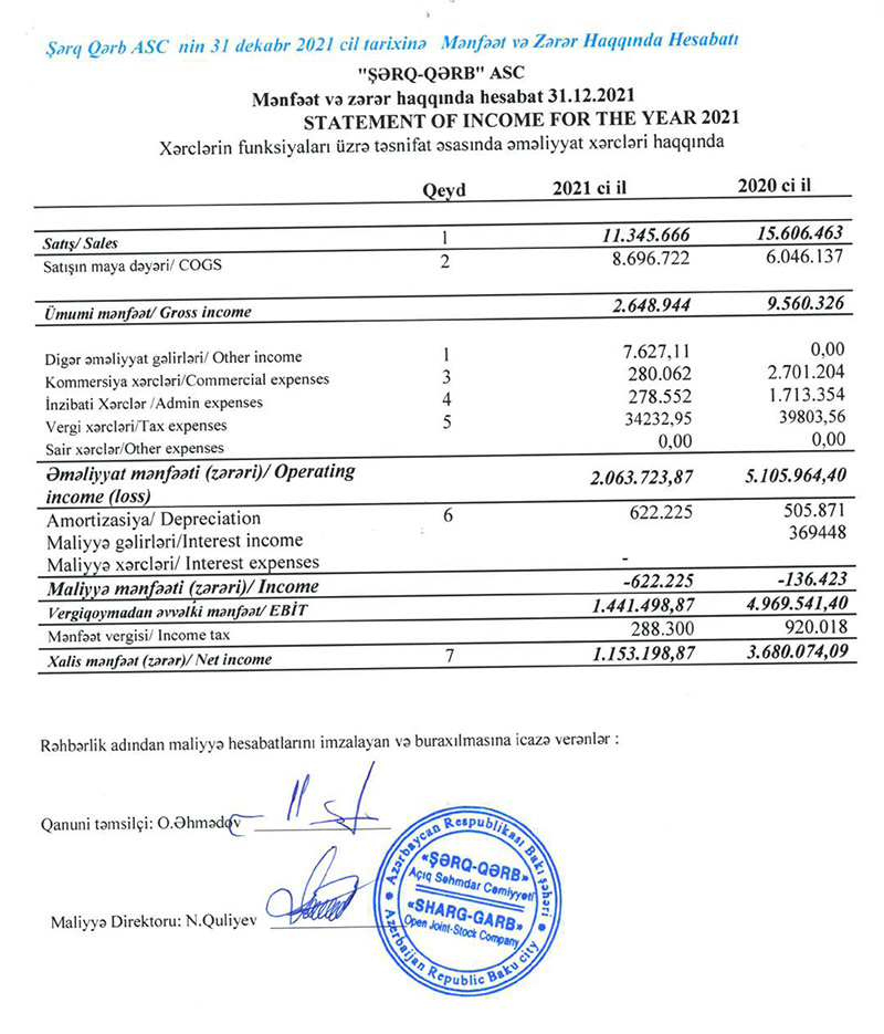 Azərbaycanın qabaqcıl nəşriyyat şirkətlərindən biri olan "Şərq-Qərb" ASC 2021-ci il 1 milyon 153 min manat xalis mənfəət ilə bağlayıb. Halbuki, Şirkət 2020-ci ili 3 milyon 680 min manat xalis mənfəət ilə başa vurmuşdu. Beləliklə, 2020-ci illə müqayisədə 2021-ci ildə "Şərq-Qərb"in xalis mənfəəti 3,2 dəfə azalıb. Şirkətin mənfəətlilik dərəcəsi 61%-dən 30%-ə, xalis mənfəət dərəcəsi 24%-dən 10%-ə düşüb.