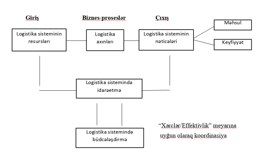Yuxarıdakıları ümumiləşdirərək iddia etmək olar ki, logistika sisteminin effektivliyini qiymətləndirmək üçün onu logistika xərcləri (yaxud istehlakçı sifarişlərini yerinə yetirmək üçün ayrılmış logistika resursları) arasında effektiv tarazlığa nail olmağa yönəlmiş təşkilati və idarəetmə kompleksi kimi təqdim etmək lazımdır [1]. Bu aspektdə istənilən logistika sistemi effektiv əks əlaqəyə malik sistem kimi şərh edilə bilər (şək. 1).