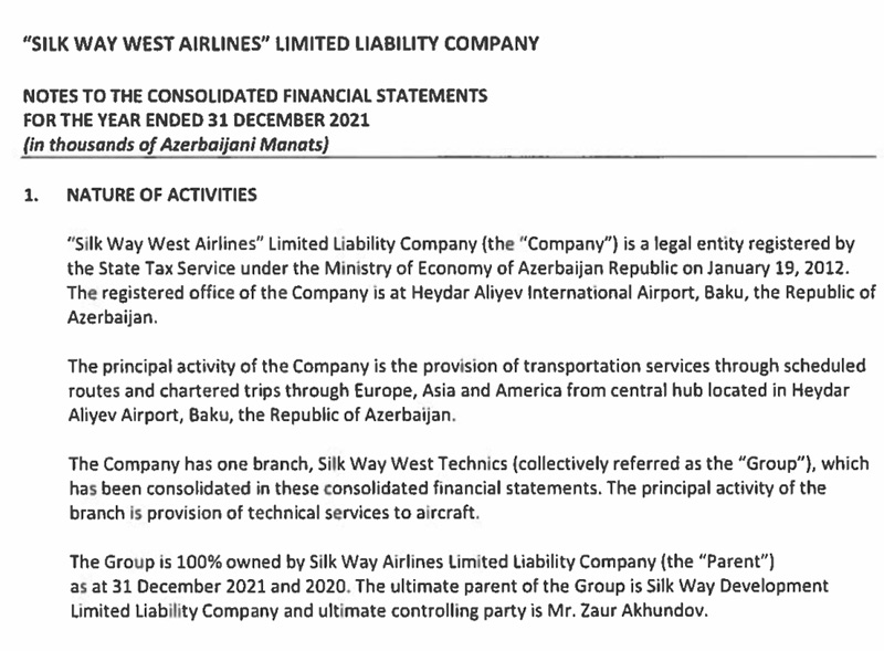 "Silk Vey Vest Aviaşirkəti" MMC-nin 100% sahibi Zaur Axundovun nəzarət etdiyi "Silk Way Airlens LLC" şirkətidir.