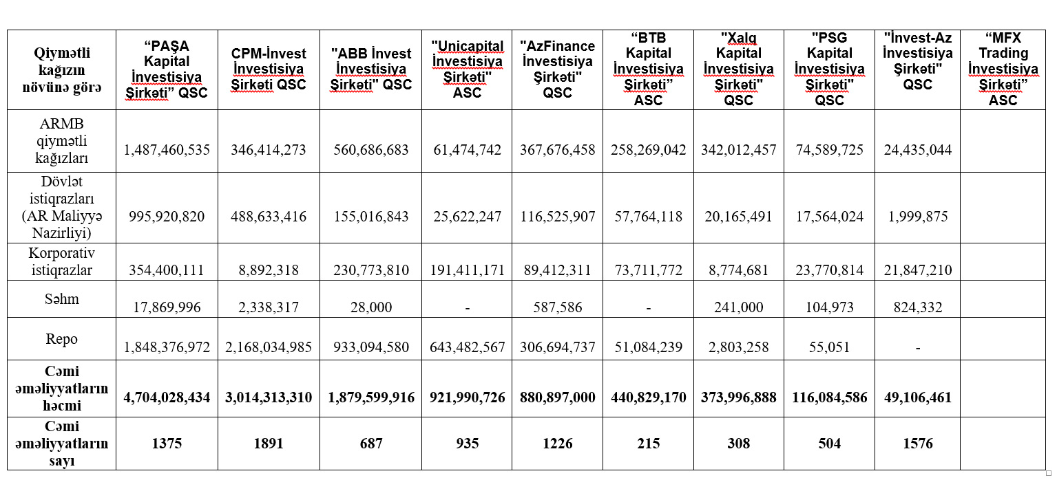 İnvestisiya şirkətlərinin dövriyyələri açıqlandı - SİYAHI