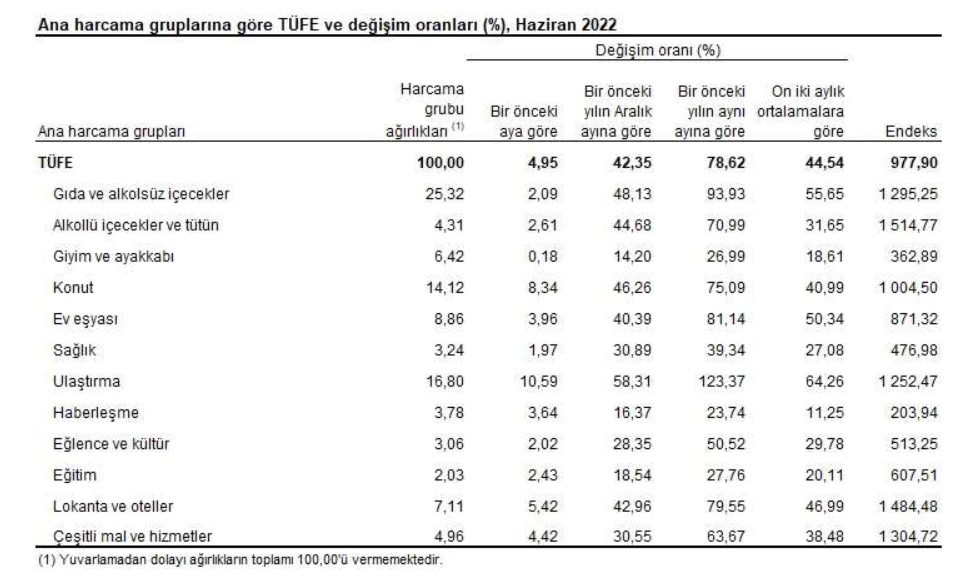 Türkiyədə 12 aylıq inflyasiya 73,50%-dən 78,62%-ə yüksəlib.Türkiyə Statistika Xidməti (TÜİK) iyun ayı üzrə istehlakçı qiymətləri indekslərinin (inflyasiya göstəricisi) açıqlayıb.