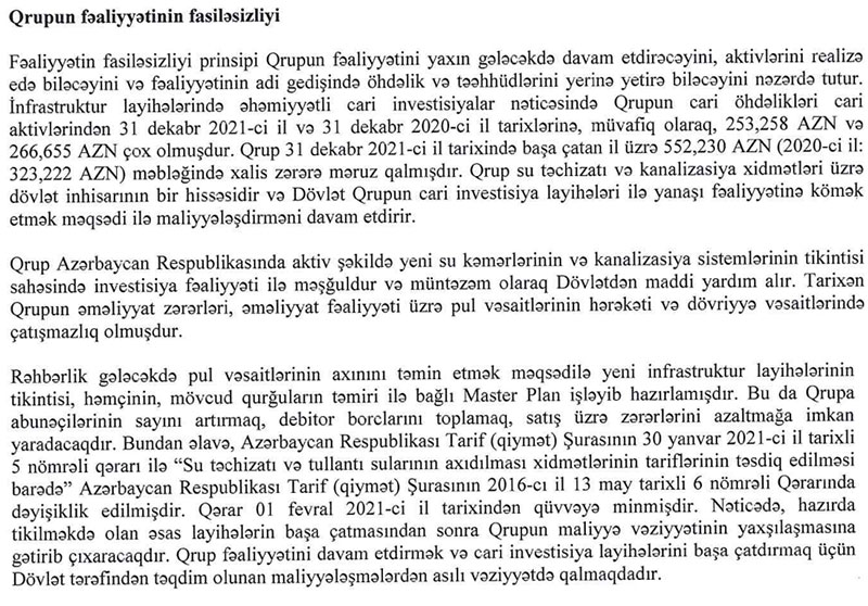 Marja.az xəbər verir ki, 31 dekabr 2021-ci il tarixində "Azərsu" ASC-nin yığılmış zərəri 7 milyard 855 milyon 686 min manata çatıb.