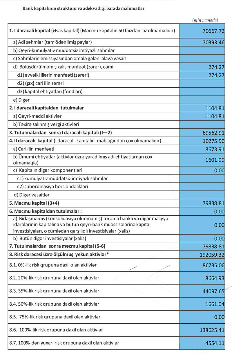 30 İyun 2022-ci il tarixində "AFB Bank" ASC 79 milyon 839 min manat məcmu kapitala malik olub. Bank 2021-ci ilin sonunda 80 milyon 20 min manat məcmu kapitala malik idi.