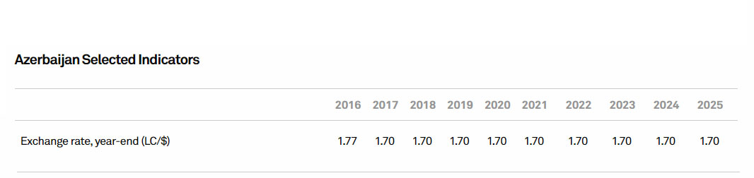 Beynəlxalq reytinq agentliyi "Standard & Poor's" Dollar/Manat məzənnəsinin 2025-ci ilin sonunadək dəyişməyəcəyini proqnozlaşdırır.