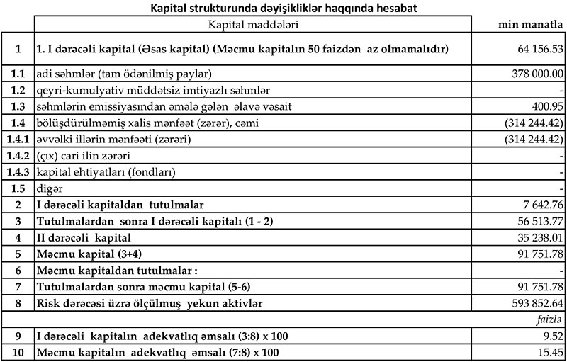 30 iyun 2022-ci il tarixində "Yelo Bank" 91 milyon 752 min manat məcmu kapitala malik olub.