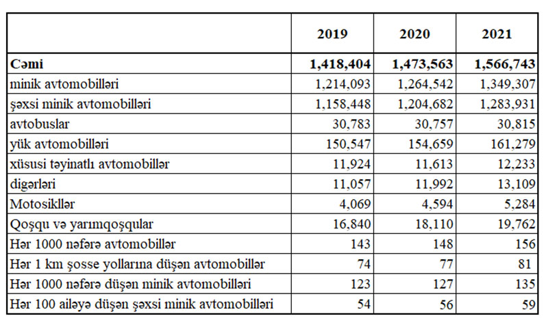 Motosikillərin sayı 2020-ci ildə 525 ədəd, 2021-ci ildə 690 ədəd artıb.
