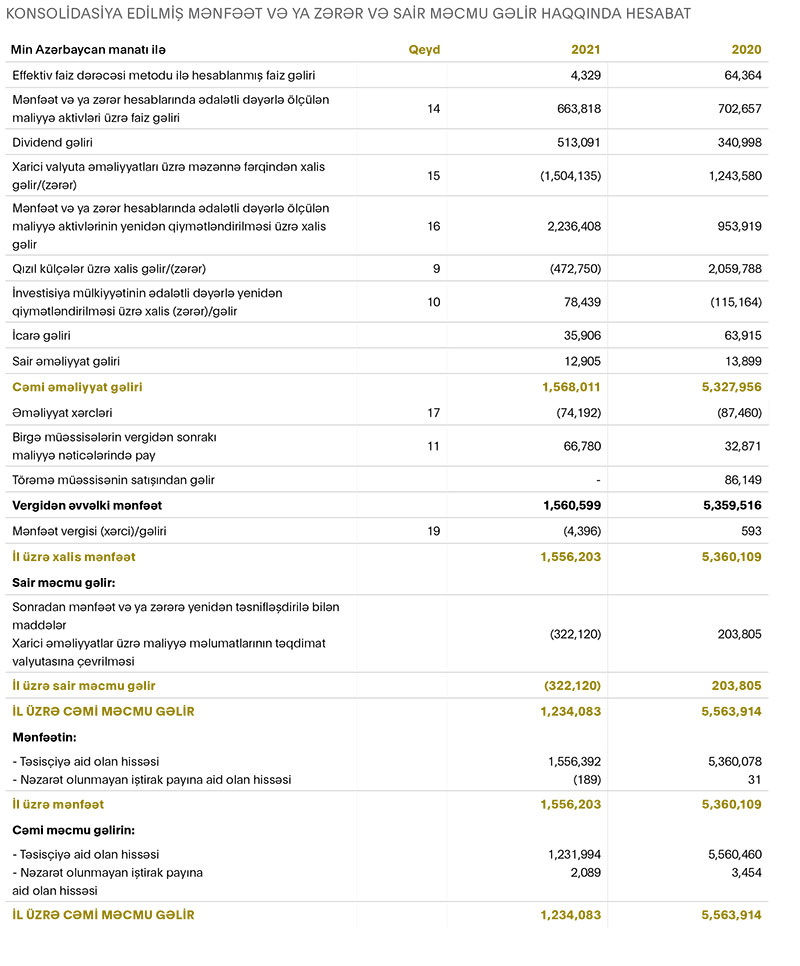 Bununla belə, qurumun bölüşdürülməmiş mənfəəti 3,9 % artaraq 41 milyard 825 milyon 204 min manata çatıb.