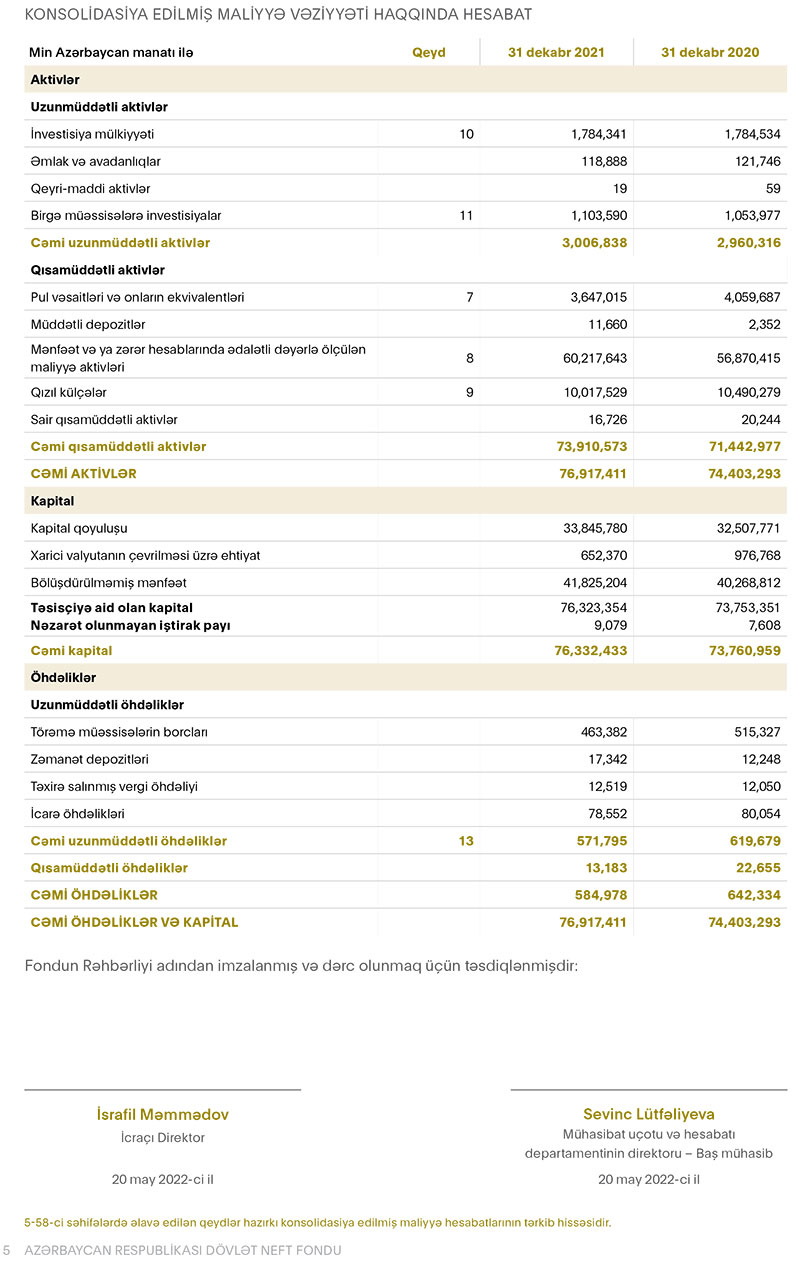 Dövlət Neft Fondu (ARDNF) 2021-ci ili 1 milyard 556 milyon 203 min manat xalis mənfəətlə başa vurub.