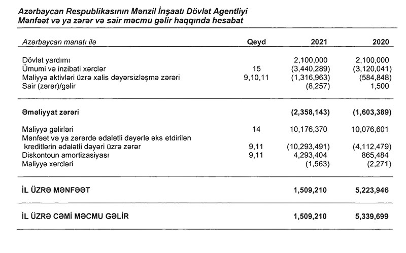 Beləliklə, Mənzil İnşaatı Dövlət Agentliyinin xalis mənfəəti 2020-ci illə müqayisədə 2021-ci ildə 3,5 dəfə azalıb.