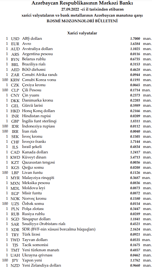 Rəsmi məzənnələr açıqlandı