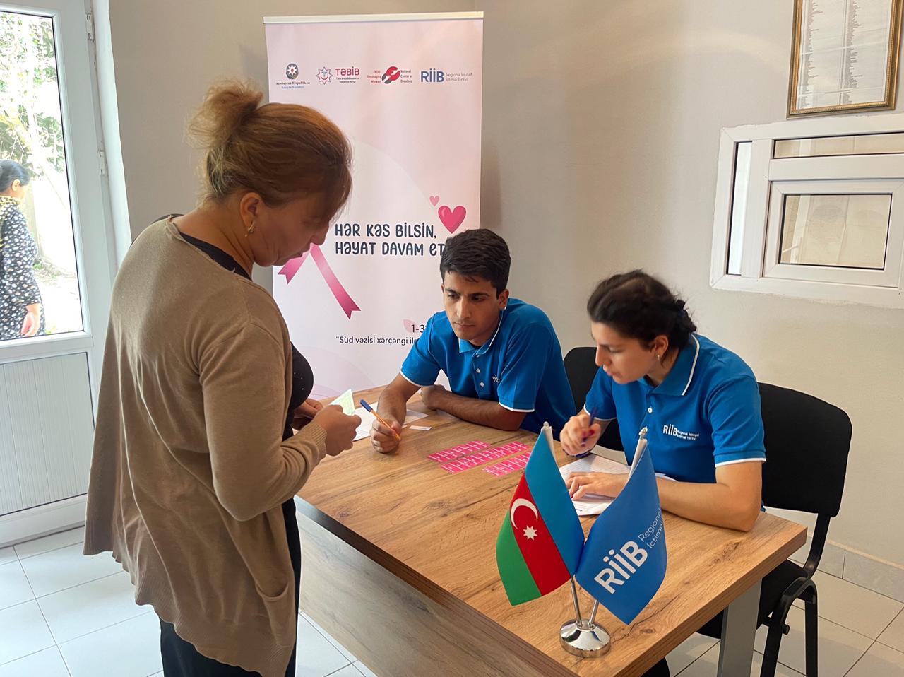 Qeyd edək ki, layihə çərçivəsində həmçinin oktyabrın 15-də Şirvan şəhərində “Hər kəs bilsin, həyat davam etsin!” devizi altında Milli Onkologiya Mərkəzinin həkimləri tərəfindən qadınlar arasında süd vəzisi xəstəlikləri üzrə profilaktik müayinələr aparılmışdır. Ümumilikdə 155-dən çox sakini əhatə edən müayinələrin nəticələri əsasında xəstəlik riski olanlar daha geniş diapazonlu müayinə üçün Milli Onkologiya Mərkəzinə dəvət edilmiş, digər patologiya aşkar olunan xəstələr ixtisaslaşmış tibb müəssisələrinə yönləndirilmiş, eyni zamanda qadınlarla profilaktik söhbət aparılmış, yerində məsləhətlər verilmişdir.