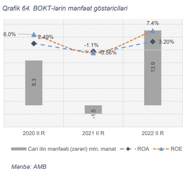 2022-ci ilin ilk yarımilliyində sektor 13.9 mln. manat mənfəət generasiya edib ki, analoji göstərici ötən ilin müvafiq dövründə 1.5 mln. manat zərər təşkil edirdi. İlin ilk yarımilliyinin sonuna sektorun ROA və ROE göstəriciləri müvafiq olaraq 3.2% və 7.4% təşkil etmişdir.