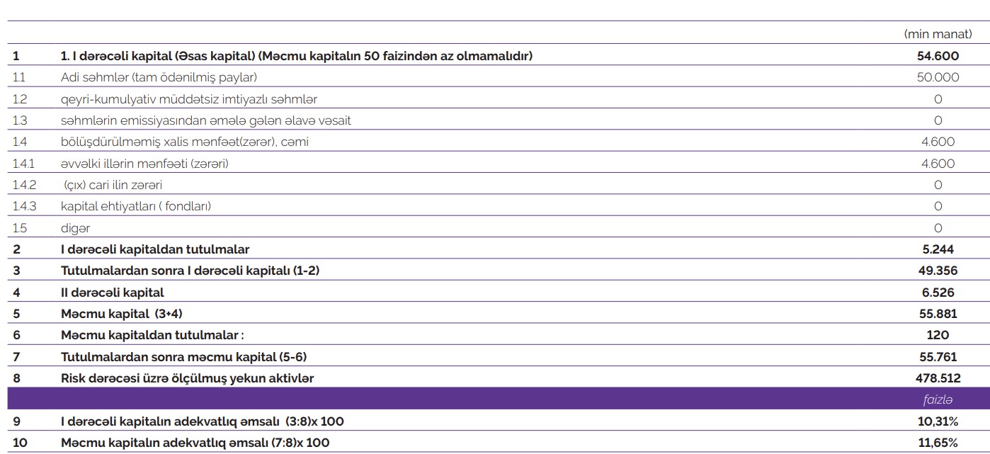 Məcmu kapital 55,8 milyon manat olmuşdur.
