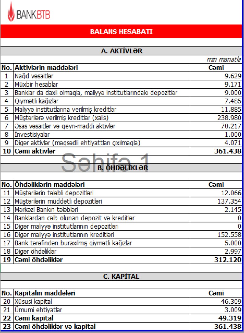 30 Sentyabr 2022-ci il tarixində "Bank BTB" 53 milyon 117 min manat məcmu kapitala malik olub.