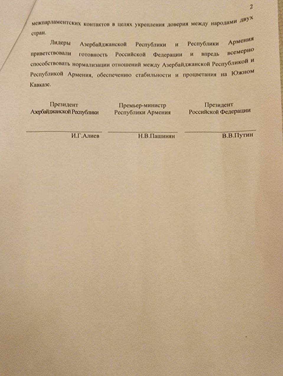 Azərbaycan Respublikasının və Ermənistan Respublikasının liderləri Rusiya Federasiyasının bundan sonra da Azərbaycan Respublikası ilə Ermənistan Respublikası arasında münasibətlərin normallaşmasına, Cənubi Qafqazda sabitliyin və tərəqqinin təmin edilməsinə hərtərəfli şərait yaratmağa hazır olmasını alqışladılar.