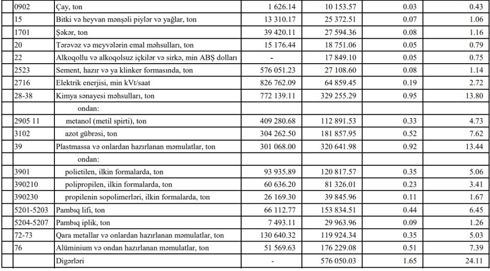 Azərbaycanın ən çox ixrac və idxal etdiyi mallar