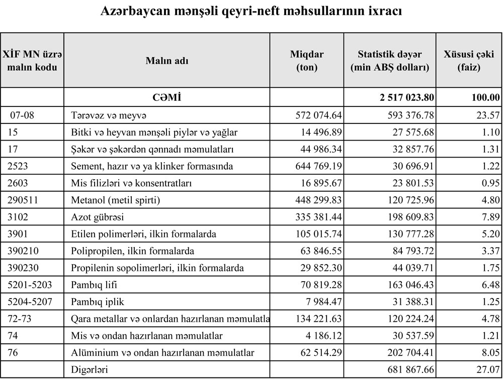 Azərbaycanın ən çox ixrac və idxal etdiyi mallar - YENİ SİYAHI