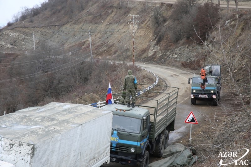 Şuşa ərazisindən keçən Laçın-Xankəndi yolunun Xankəndiyə aid hissəsində Rusiya sülhməramlılarının postunda hərəkətlilik müşahidə olunur.