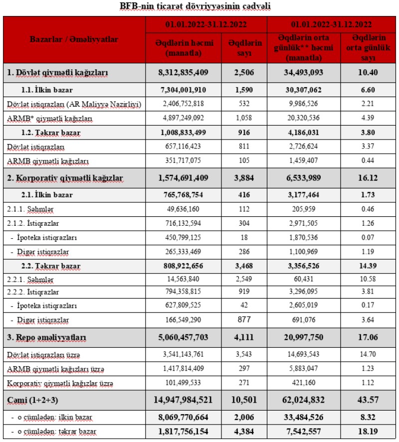2022-ci il ərzində Maliyyə Nazirliyi dövlət istiqrazlarının yerləşdirilməsi yolu ilə 2 milyard 406 milyon 752 min 818 manat cəlb edib. Bu, indiyədək dövlət istiqrazları vasitəsilə cəlb edilmiş ən böyük illik məbləğdir.