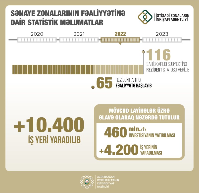 2021-ci illə müqayisədə satış 20,6%, ixrac isə 10,08% artıb. Sənaye zonalarında 10.400-dən çox iş yeri yaradılıb. Mövcud layihələr üzrə əlavə olaraq 460 milyon manata yaxın investisiyanın yatırılması və 4.200-dən çox iş yerinin yaradılması nəzərdə tutulur.