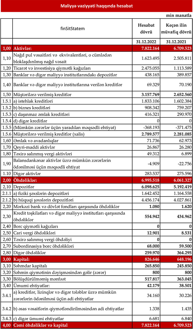 HƏMÇİNİN OXU: İlk dəfə “Kapital Bank”ın cəmi illik əməliyyat gəlirləri 1 milyard manatı aşıb“Kapital Bank” ASC-nin cəmi kredit portfeli (müştərilərə verilmiş kreditlər) 2021-ci illə müqayisədə 2022-ci ildə 505 milyon 209 min manat artaraq 31 dekabr 2022-ci il tarixində 3 milyard 157 milyon 769 min manat təşkil edib.