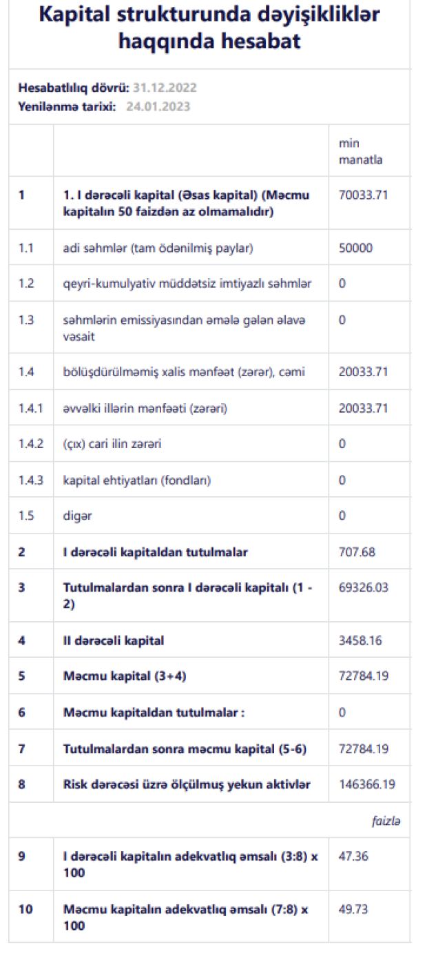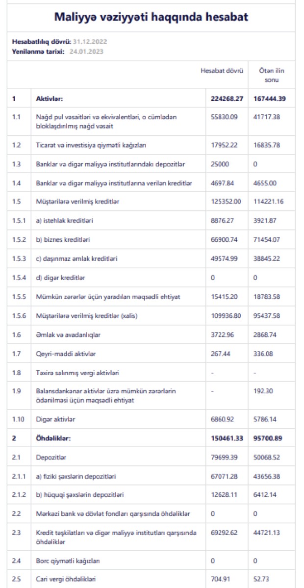 Mümkün zərərlər üçün yaradılan məqsədli ehtiyatlara ayrılan vəsait 2021-ci ildə 5 milyon 90 min manat ikən, 2022-ci ildə 4 milyon 10 min manat təşkil edib. Həm əməliyyat mənfəətinin artması, həm də mümkün zərərlər üçün yaradılan məqsədli ehtiyatlara ayrılan vəsaitin azalması xalis mənfəətin artmasını təmin edib.