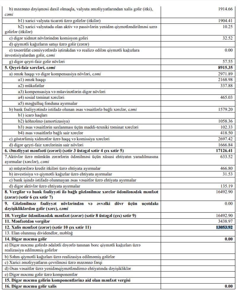 Müqayisə üçün qeyd edək ki, 2021-ci ildə "Naxçıvanbank"ın əməliyyat gəlirləri 18 milyon 406 min manat, əməliyyat xərcləri 6 milyon 924 min manat, gəlirlər xərcləri üstələdiyindən əməliyyat mənfəəti 11 milyon 482 min manat təşkil etmişdi. Bank əməliyyat mənfəətindən 3 milyon 439 min aktivlər üzrə mümkün zərərlərin ödənilməsi üçün xüsusi ehtiyatın yaradılmasına ayırmış və 1 milyon 742 min manat mənfəət vergisi ödəmişdi.
