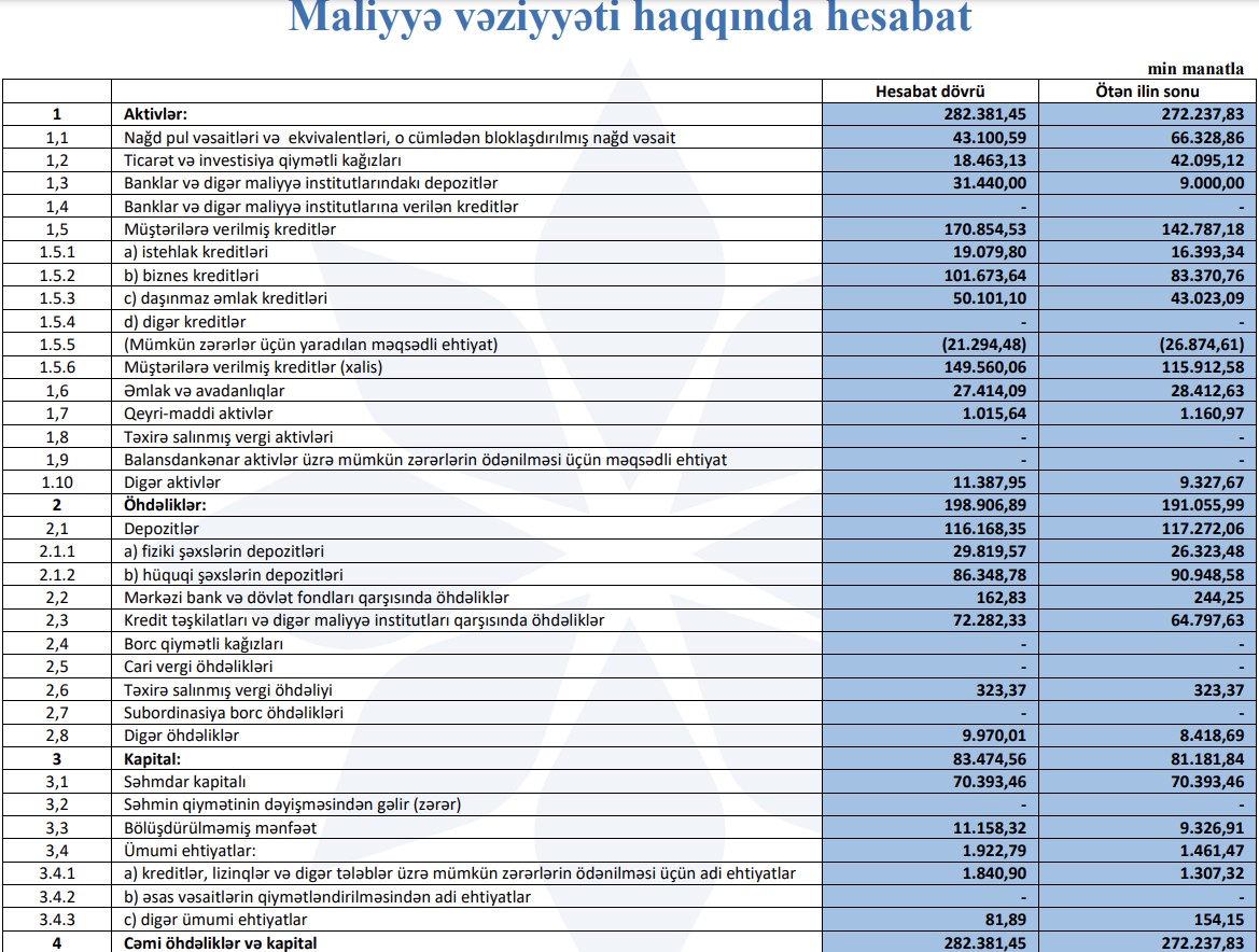 "AFB Bank" ASC 2022-ci il üzrə maliyyə göstəricilərini açıqlayıb.