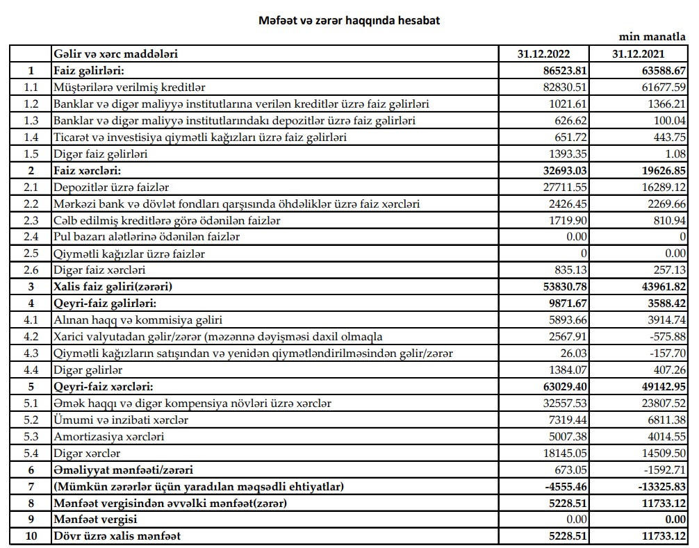 Ötən il "Yelo Bank"ın xərcləri gəlirlərinin 99%-dən çoxunu sildiyindən əməliyyat mənfəəti cəmi 673 min manat təşkil edib. Mümkün zərərlər üçün yaradılan məqsədli ehtiyatlardan azad olmuş 4 milyon 555 min manatın hesabına "Yelo Bank"ın mənfəəti 5 milyon 228 min manata yüksəlib.
