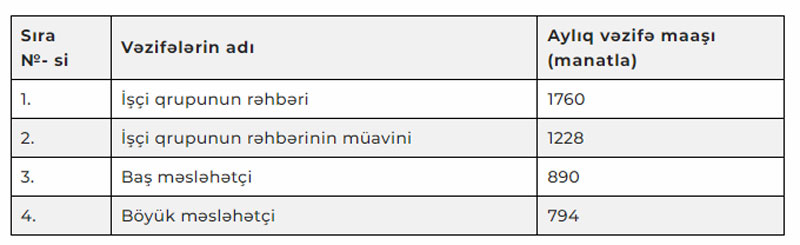 Qərara əsasən, İşçi qrupunun işçilərinin yeni aylıq vəzifə maaşlarının məbləği müəyyənləşib.