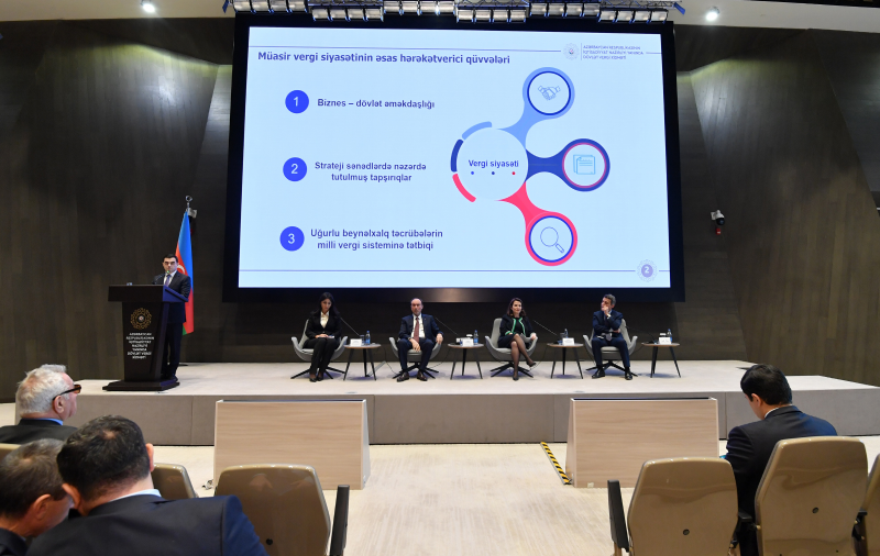 Konfrans işini “Heydər Əliyevin müasir vergi sisteminin formalaşdırılmasında rolu və iqtisadi siyasət sahəsində fəaliyyəti”, “Müasir vergi siyasəti: biznes-dövlət münasibətləri və beynəxalq trendlər” və “İşğaldan azad edilmiş ərazilərin bərpası: vergi siyasəti təşviq aləti kimi” mövzularında sessiyalarla davam etdirib.