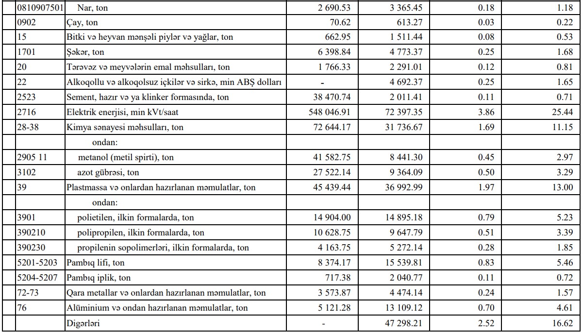 Azərbaycanın ən çox ixrac və idxal etdiyi mallar - YENİ SİYAHI
