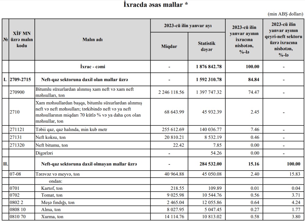 2023-cü ilin yanvar ayında Azərbaycanın ən çox ixrac və idxal etdiyi mallar.