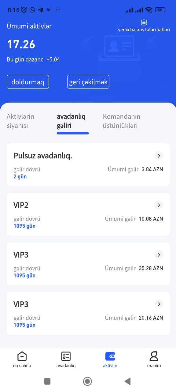 Fırıldaq mexanizm ilə 3 paket təqdim edilir: "VİP 1", "VİP 2" və "VİP 3". Paketlərin qiymətləri müvafiq olaraq 5 AZN, 50 AZN və 150 AZN-dir.