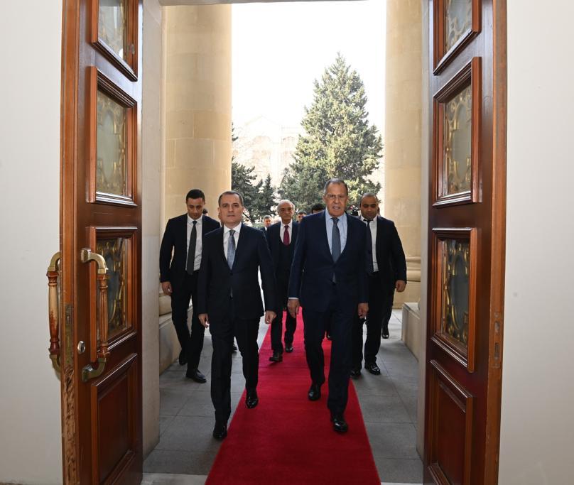 Azərbaycanın xarici işlər naziri Ceyhun Bayramovla Bakıda səfərdə olan Rusiyanın xarici işlər naziri Sergey Lavrov arasında görüş başlayıb.