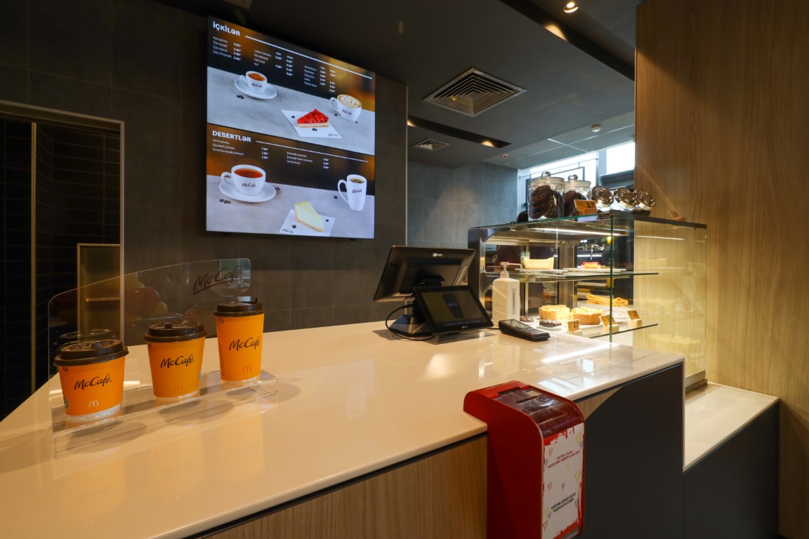 Restoranın tərkibində fəaliyyət göstərən “McCafe” kafesində qəhvə içkilərinin və desertlərin geniş seçimindən yararlana bilərsiniz.