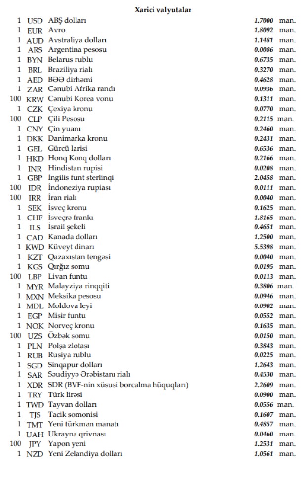 Rəsmi məzənnələr açıqlandı
