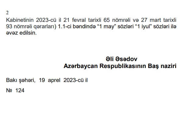 Bununla bağlı Baş nazir Əli Əsədov qərar imzalayıb.