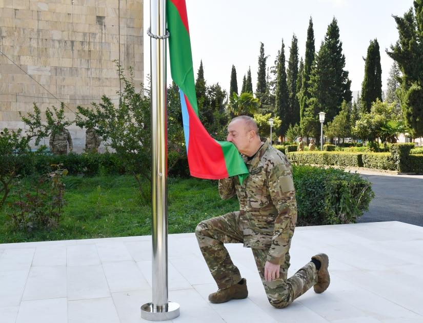 Azərbaycan Respublikasının Prezidenti İlham Əliyev oktyabrın 15-də Ağdərə şəhərində Azərbaycan Respublikasının Dövlət Bayrağını ucaldıb.