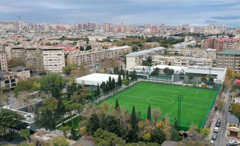 İdman qurğusunun həyətində geniş abadlıq-quruculuq işləri görülüb, yaşıllıqlar salınıb.