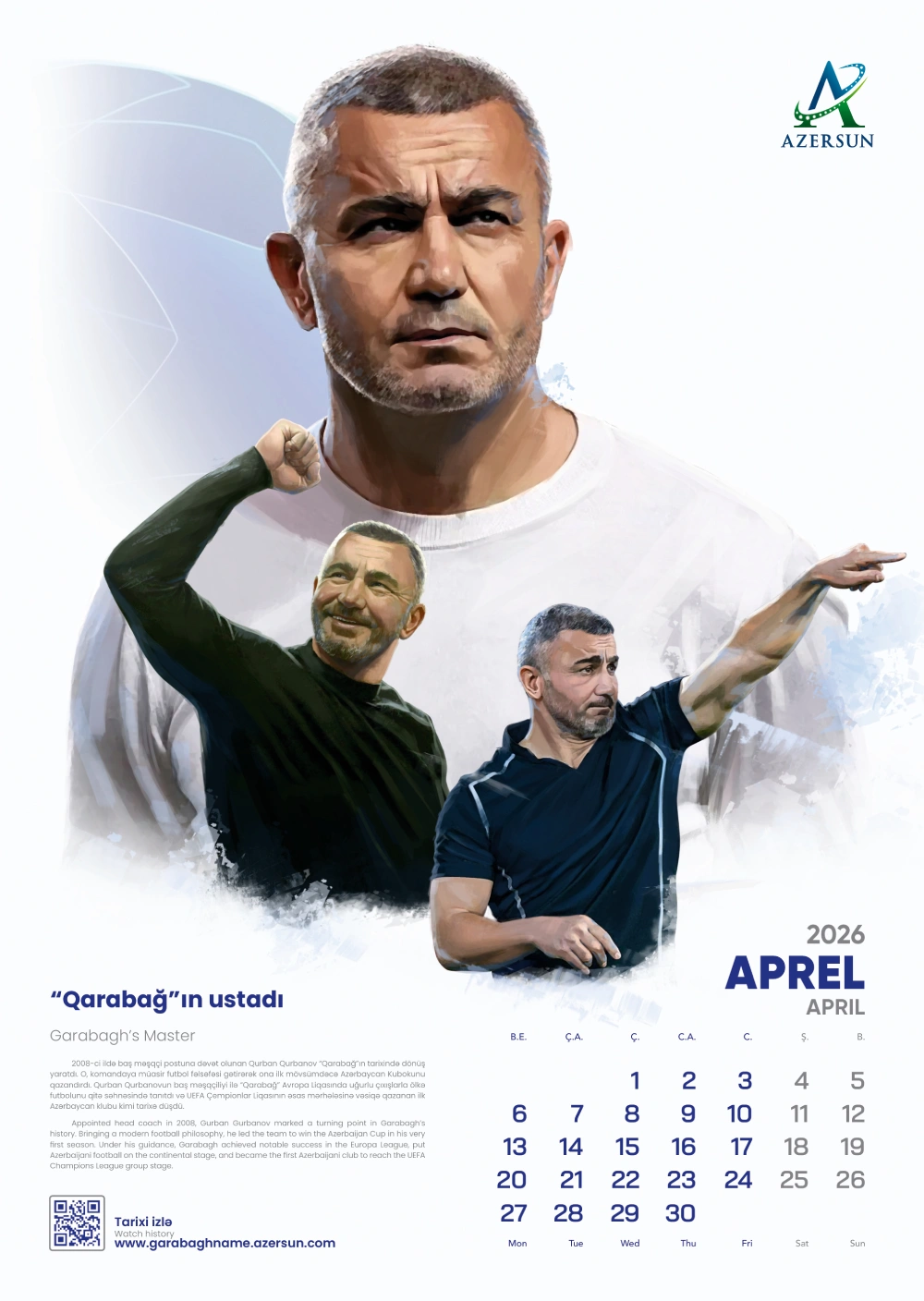 “Qarabağın ustadı” bölməsində baş məşqçi Qurban Qurbanovun klub tarixində yaratdığı dönüş nöqtəsi və “Qarabağ”a qazandırdığı dəyərlər xüsusi vurğulanır. Təqvim “Qarabağın Fatehi” başlığı ilə yekunlaşır. Bu hissədə ölkə başçısı İlham Əliyevin klubun fəaliyyətinə daim göstərdiyi diqqət və qayğı, eləcə də “Qarabağ”ın uğurlarının Qarabağ həqiqətlərinin dünyaya çatdırılmasında oynadığı mühüm rol qeyd olunur.